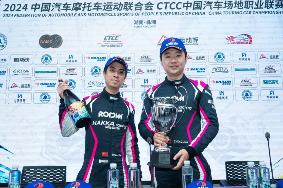 在林志山和章文滔的出色表现之外,吉人自有天相车队的五台赛车也各自在株洲站比赛中取得了亮眼的成绩。同样以全新阵容晋升至更高级别挑战的#88陈少杭/卢沛芳车组,在CTCC运动杯第二回合比赛中一路过关斩将,逆流而上地从后方发车赶超至全场第二,最终捧起全场亚军奖杯。